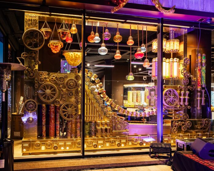 La intrare te întâmpină o explozie de culori, lumini și arome. Rafturile sunt pline de praline, bomboane, jeleuri, biscuiți, napolitane, acadele și torturi aduse direct din fabricile Roshen. Peste 300 de sortimente de dulciuri îți fac cu ochiul, iar vizitatorii pot cântări singuri combinațiile preferate, într-o zonă cu bazine uriașe pline cu jeleuri și caramele. La etaj, tentația se rafinează: prăjituri proaspete, pachete-cadou și torturi spectaculoase cu migdale sau vișine în ciocolată, la prețuri între 86 și 95 de lei.