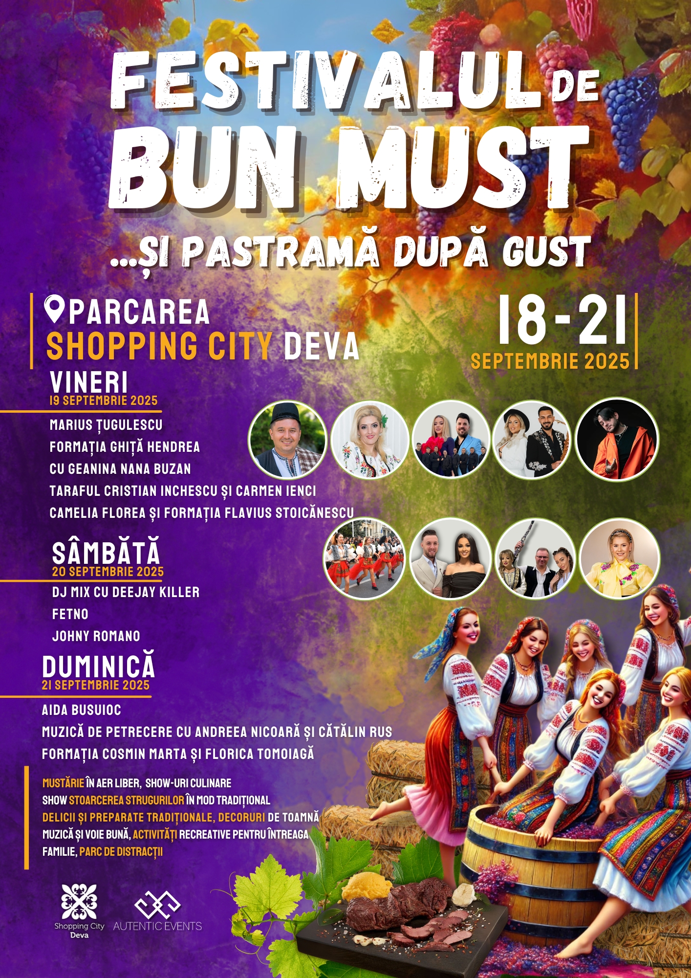 Toamna asta, Deva găzduiește unul dintre cele mai savuroase festivaluri din Transilvania. În perioada 18 – 21 septembrie 2025, parcarea Shopping City Deva devine scena unei sărbători ca pe vremuri: cu must proaspăt, pastramă sfârâind pe grătar și atmosferă de petrecere românească. Festivalul de Bun Must și Pastramă după Gust revine cu un concept care pune accent pe autentic, tradiție și gusturi din copilărie.