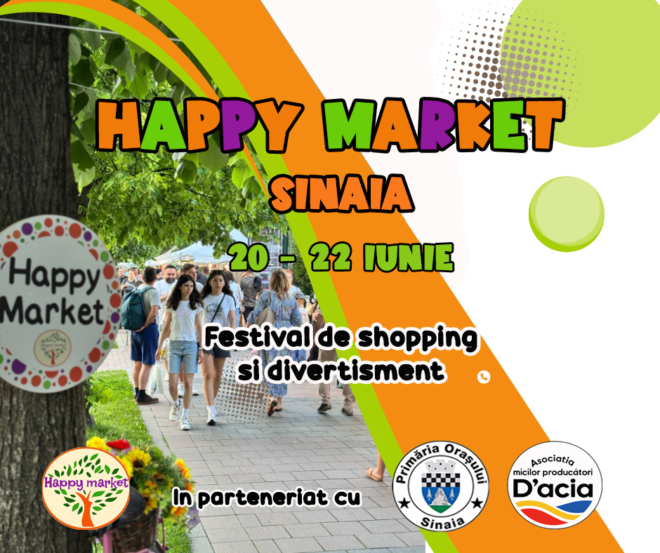 Între 20 și 22 iunie 2025, Sinaia găzduiește o nouă ediție a evenimentului Happy Market, organizat de Asociația Micilor Producători D’acia, în parteneriat cu alți promotori ai autenticității românești. Totul se întâmplă pe Bulevardul Carol I, la nr. 51, într-o zonă accesibilă, aproape de Primărie. Programul este zilnic între orele 9:00 și 22:00, iar intrarea e liberă.