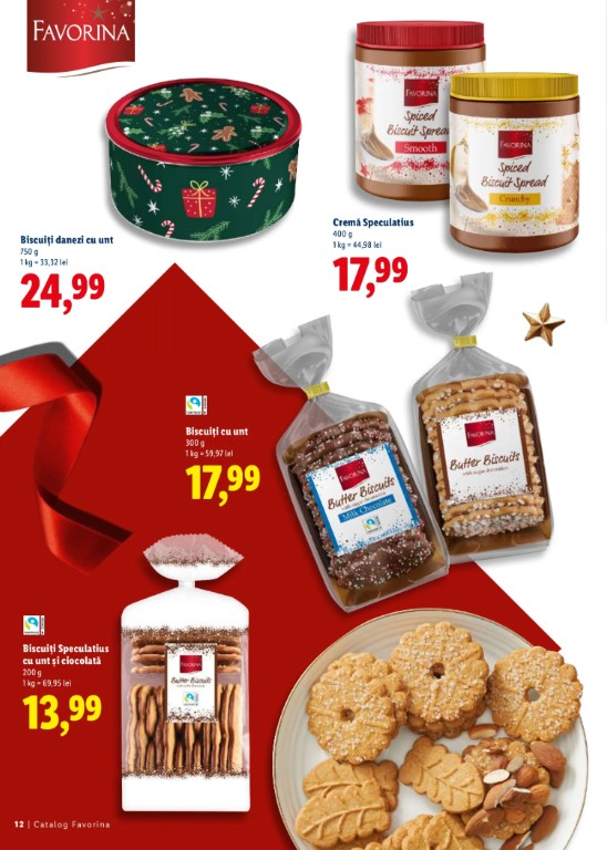 Pe lângă Speculatius, Lidl a readus și alte produse Favorina, menite să completeze atmosfera de sărbătoare. Prețurile rămân accesibile, iar sortimentul este variat: