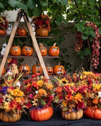 - baloți de paie, țarcuri cu dovleci, decoruri rustice
