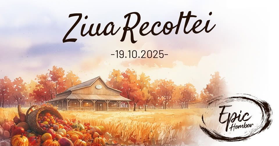 Pe 19 octombrie, de la ora 15:00, are loc Ziua Recoltei la Epic Hambar, pe strada Oltețului 30. Este un eveniment mai restrâns, dar cu meniu complet, atmosferă rustică și preț de participare: 160 lei/persoană (copiii sub 14 ani au reducere de 50%, iar cei sub 7 ani intră gratuit).